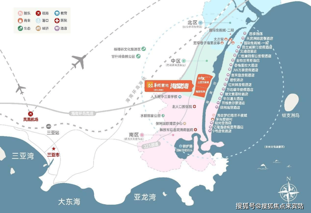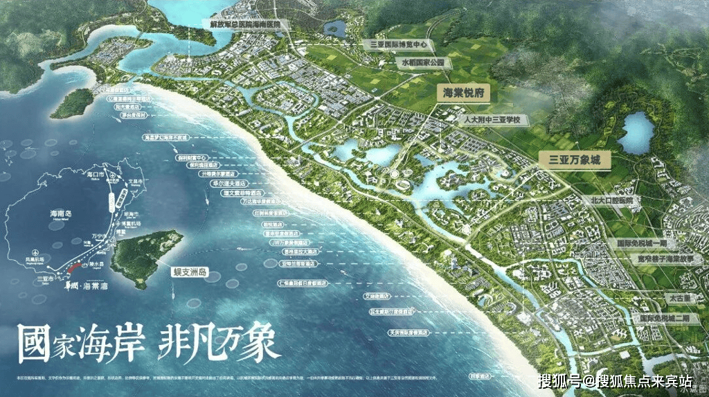 国家海岸 汇聚全球度假资源三亚海棠湾被定位为“国家海岸”,作为世界级的旅游度假区和度假天堂,承载国家热带滨海旅游品牌形象。规划一点·一带·三区,坐拥千亿级的娱乐、休闲、康养、购物、教育等资源配套。
